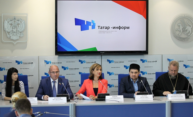 Участниками пресс-конференции стали первый заместитель министра культуры РТ Ирада Аюпова, директор Дома дружбы народов РТ Ирек Шарипов, первый заместитель муфтия РТ Рустам хазрат Батров, секретарь Казанской епархии протоиерей Владимир Самойленко, руководитель хора прихода религиозной организации «Воздвижение Святого Креста» Римско-католической церкви Миляуша Насыбуллина.
